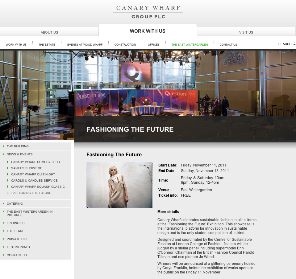 The Fashioning the Future Awards are hosted by the Centre for Sustainable Fashion fat the London College of Fashion: http://www.sustainable-fashion.com/fashioning-the-future/